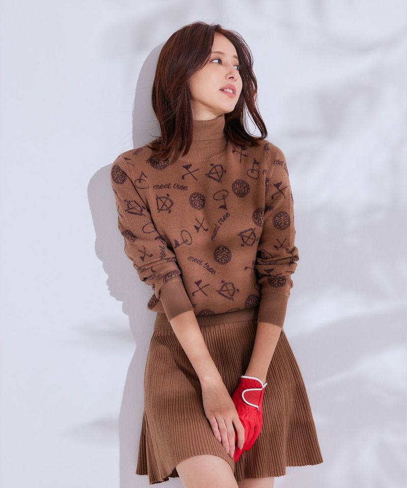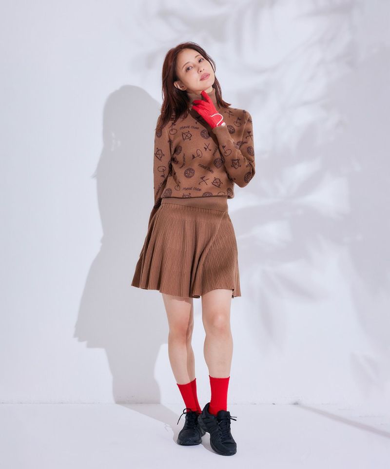 ロゴジャカードタートルニットと合わせれば、上品さと可愛らしさを兼ね備えたコーディネートが完成します。ラウンドでもタウンユースでも映える、シーズンの主役アイテムです。
