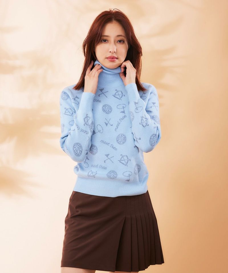 なめらかな肌触りが魅力のタートルネックニット。ブランドロゴをモチーフにしたジャカード柄が、シンプルな中に上品なアクセントを添えます。ほどよく身体に寄り添うフィット感で、スイングの動きを妨げず快適な着心地を実現。しっとりとした質感とストレッチ性を兼ね備え、ラウンドはもちろんタウンユースでも活躍する一着です。タートルネック仕様で首元まで暖かく、秋冬シーズンのゴルフスタイルに最適です。