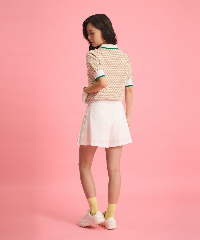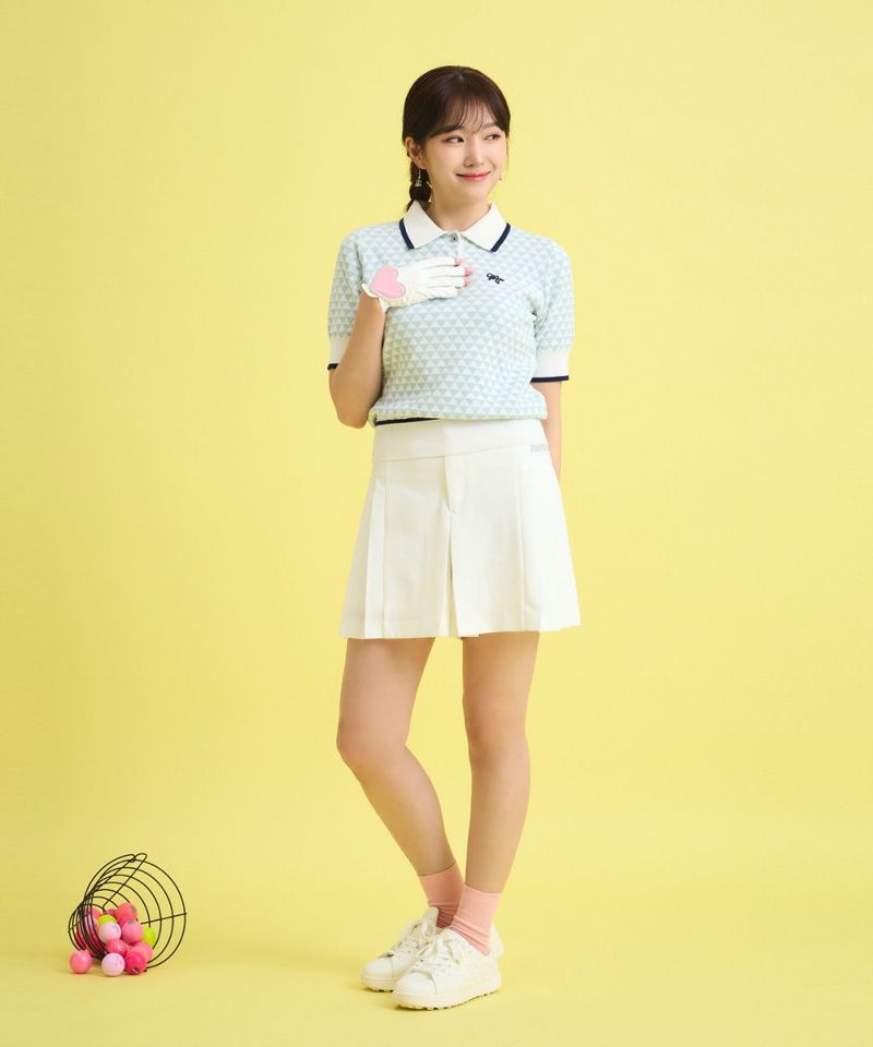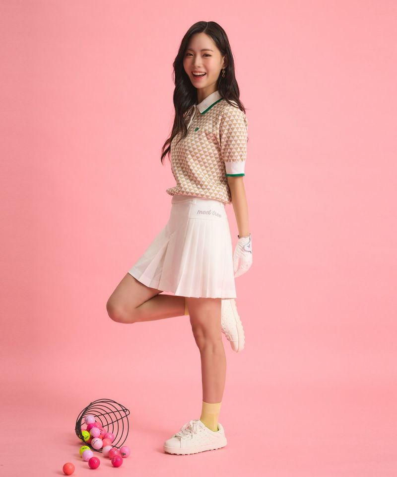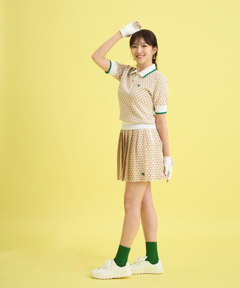 同シリーズのニットスカートとセットアップで、洗練されたゴルフスタイルが完成します。