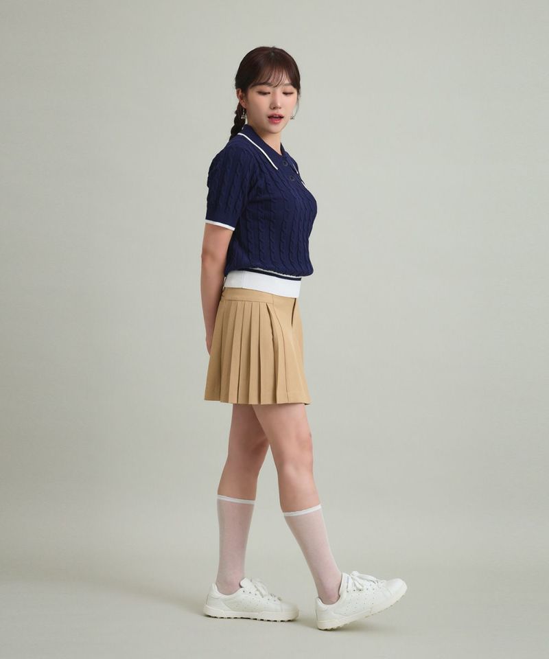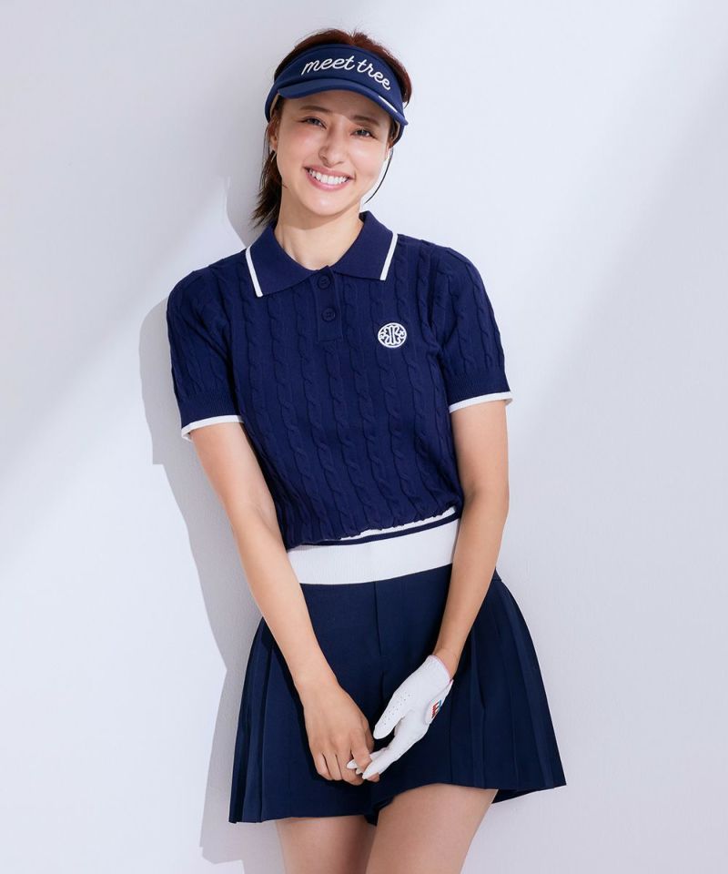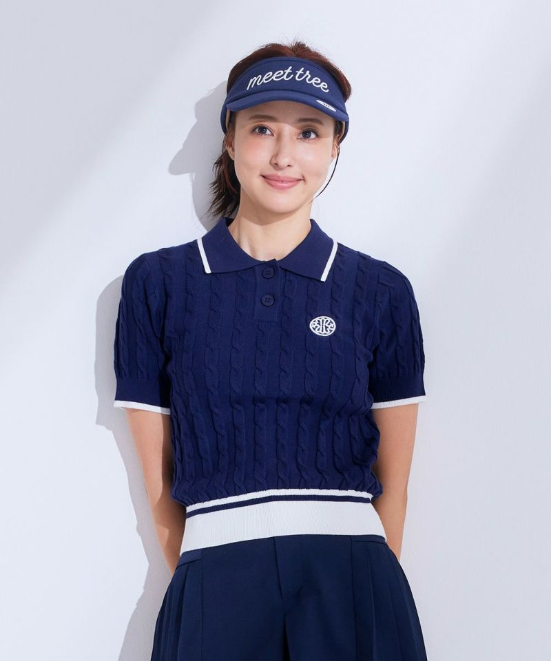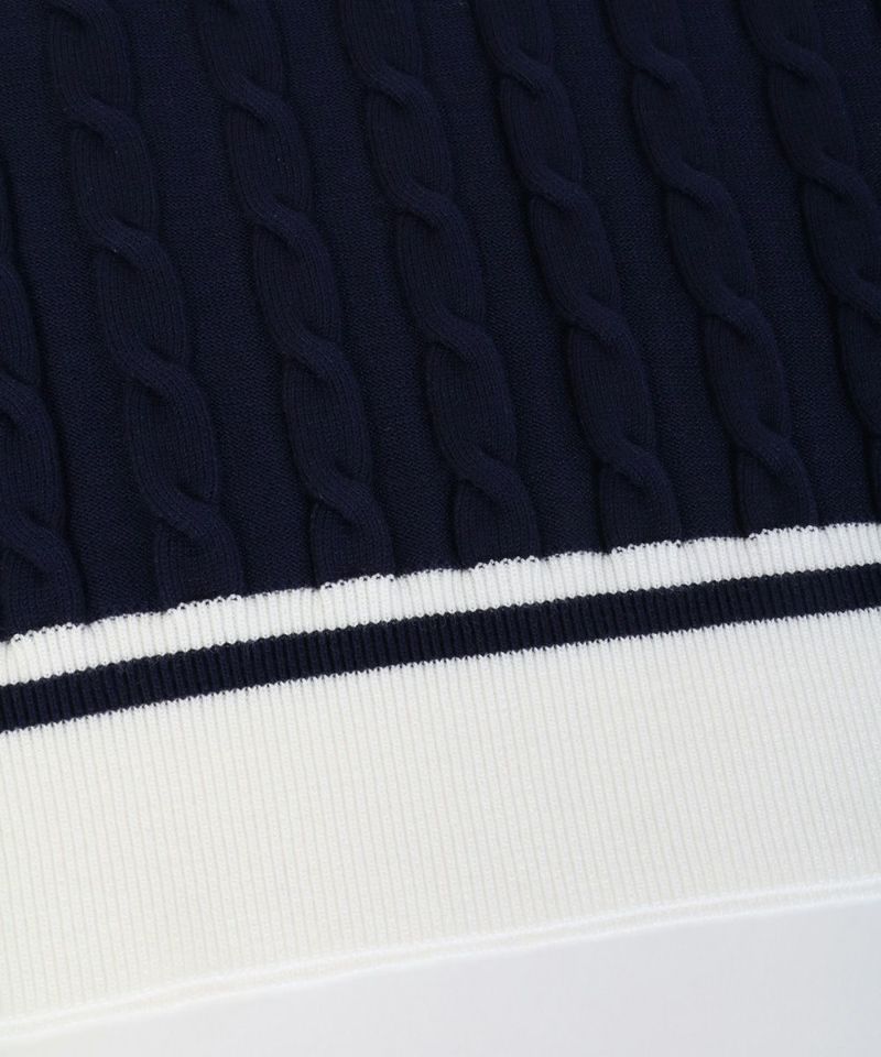 立体感のあるケーブル編みが特徴のニットポロシャツ。