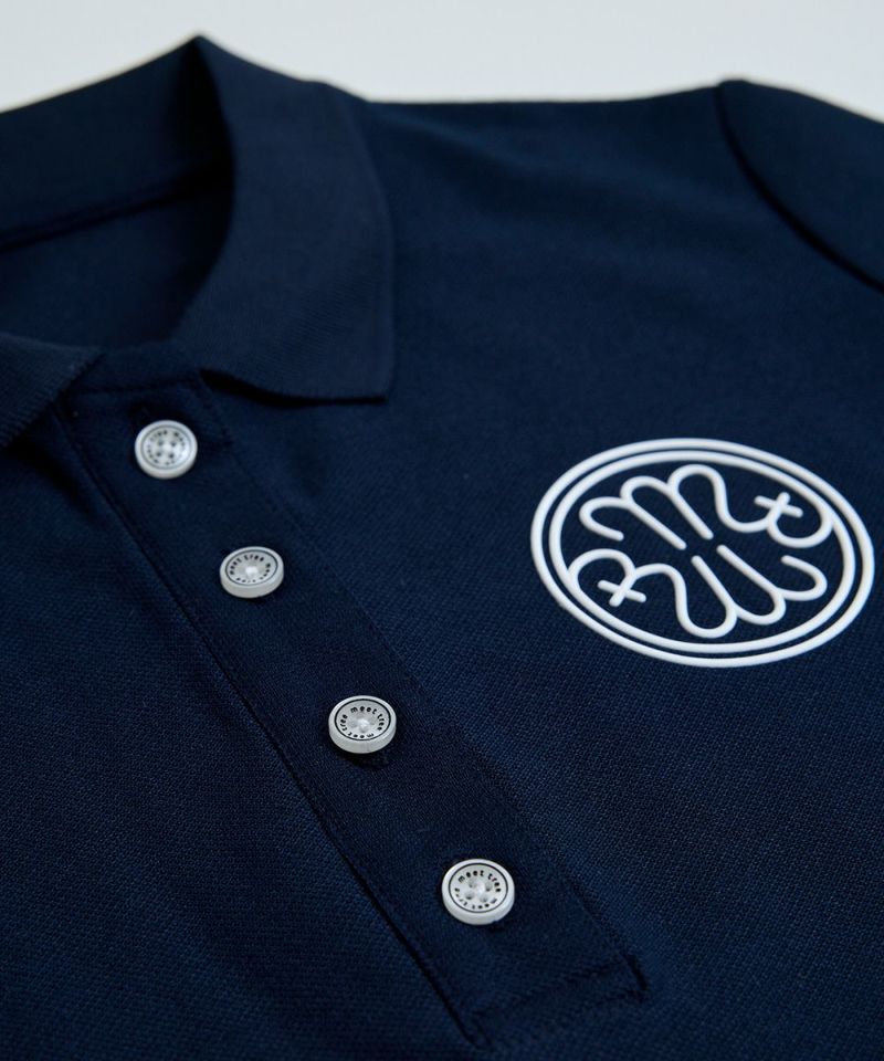 シンプルなデザインに、シリコンプリントで施した胸元のロゴが存在感を放つエンブレムポロシャツ。